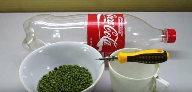 2. Szydłem (lub innym ostrym narzędziem) wywierć otwory na całej powierzchni butelki, ich rozmiar powinien być na tyle duży, aby odprowadzać nadmiar wody, ale mniejszy niż średnica ziaren.