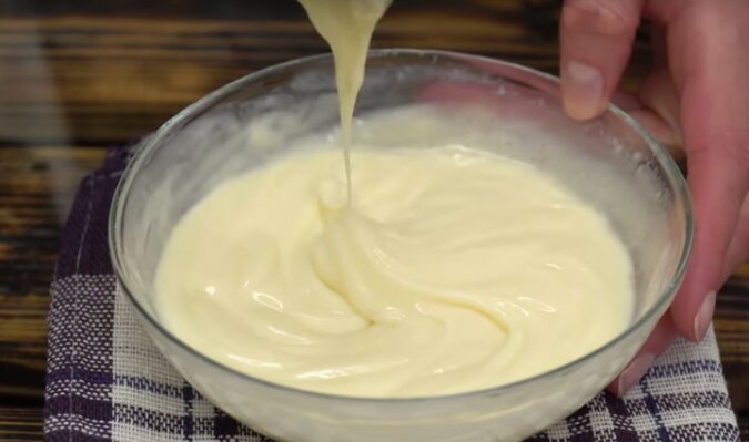 Do kremu wymieszaj mleko skondensowane z 40 g soku z cytryny. Ubijaj do gładkości. Przykryj folią i wstaw do lodówki na godzinę.