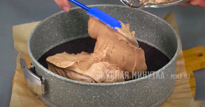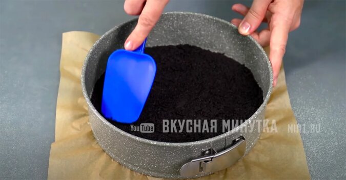 Najpierw ciasto (baza do sernika). Przygotowuję go z gotowego proszku. Ale możesz użyć absolutnie KAŻDE ciasteczka czekoladowe i zmielić je na okruchy w blenderze.