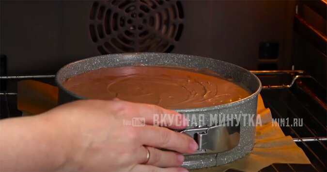 Zmniejszam temperaturę piekarnika do 150 stopni. Formę wstawiam do piekarnika i piekę bez otwierania drzwiczek przez 45-50 minut.