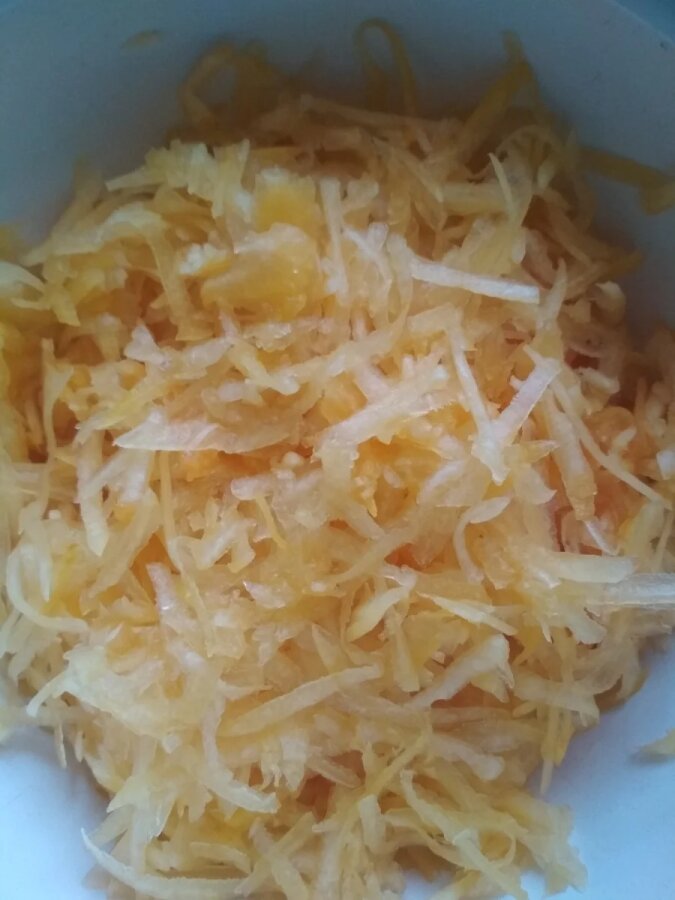 Obierz dynię. Pokrój w wygodne plastry, aby ułatwić ścieranie.