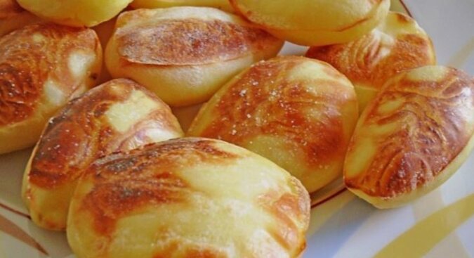 Ziemniaki dokładnie wyszoruj, obierz i pokrój na połówki. Ułóż je na blaszce i dość obficie posól. Włóż ziemniaczki do piekarnika nagrzanego do temperatury 220 stopni na pół godziny. Po upływie tego czasu, gdy nabiorą złotego koloru smarujemy je ciepłym masłem i pieczemy jeszcze przez 5 minut. Po wszystkim dobrze jest na chwilę pozostawić je w środku.