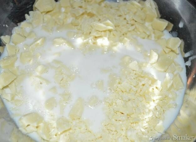 7. Posiekanie białej czekolady malutkie kawałki lub starcie jej.
