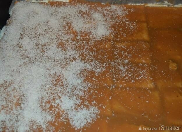 16. Posypanie wierzchu ciasta wiórkami kokosowymi.