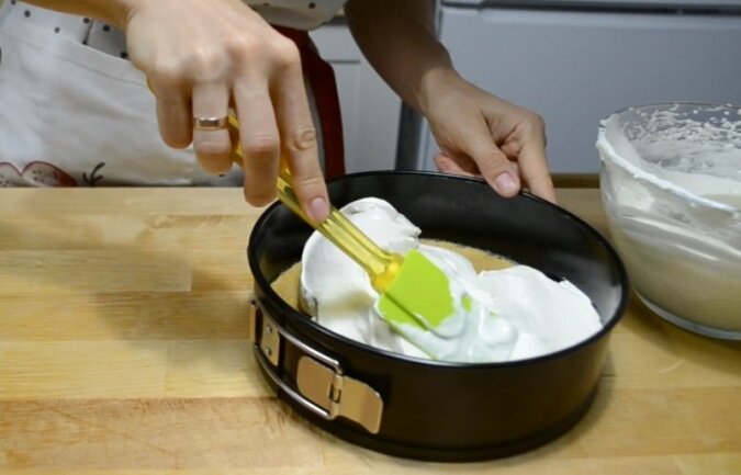 Zdejmij z palnika, wlej na wierzch warstwę ciasta i od razu wstaw do lodówki.