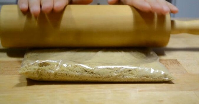 Należy moczyć żelatynę w 400 ml ciepłej wody przez 20 minut. Zmiel ciastka w blenderze lub zmiażdż je wałkiem do ciasta na małe okruchy. W tym drugim przypadku lepiej jest wcześniej umieścić ciasteczka w torbie.