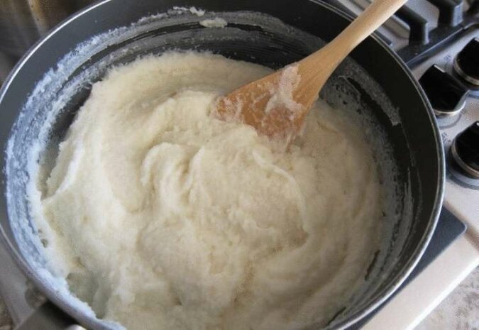 Ugotuj kaszę manną na mleku ciągle mieszając. Zostaw do ostygnięcia.
