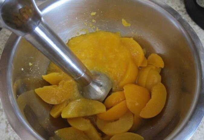 Zmiel brzoskwinie blenderem, aż będą papkowate.