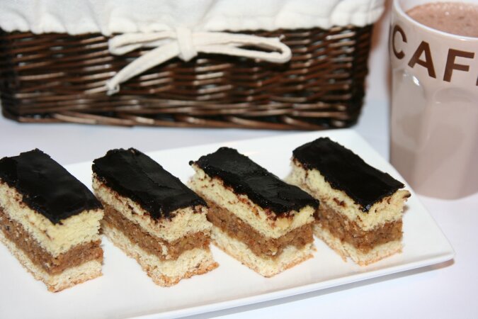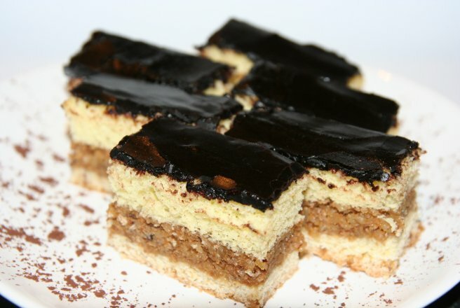 Ten deser okazuje się bardzo smaczny dzięki niesamowitemu nadzieniu orzechowemu oraz słodko-kwaśnej konfiturze.