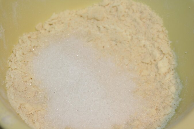 Następnie dodaj miękkie masło (rozcieraj rękami, aż uformują się płatki).