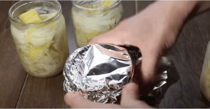 Umieść słoiki na blasze do pieczenia i wstaw do zimnego piekarnika. „Duś” przez 30-40 minut w temperaturze 180 stopni. Gdy ziemniaki będą gotowe, posyp posiekanymi ziołami.
