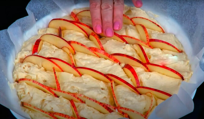 Krok 16. Udekoruj ciasto plastrami jabłka na wierzchu.