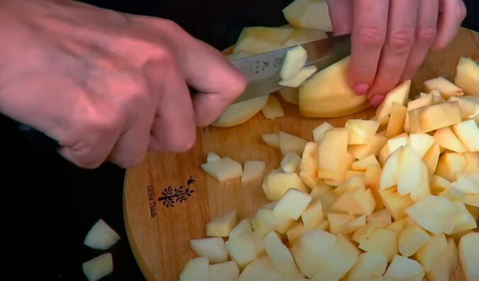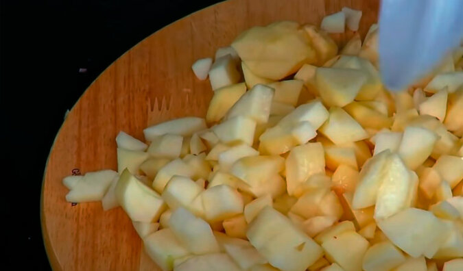 Krok 1. Obierz 3 jabłka. Pokrój w drobną kostkę.