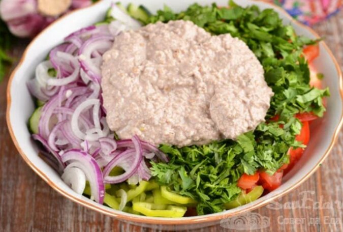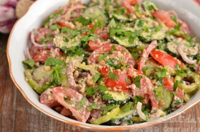 Zrobiłam szybką gruzińską sałatkę warzywną. Jestem zachwycona, chodzi o dressing.
