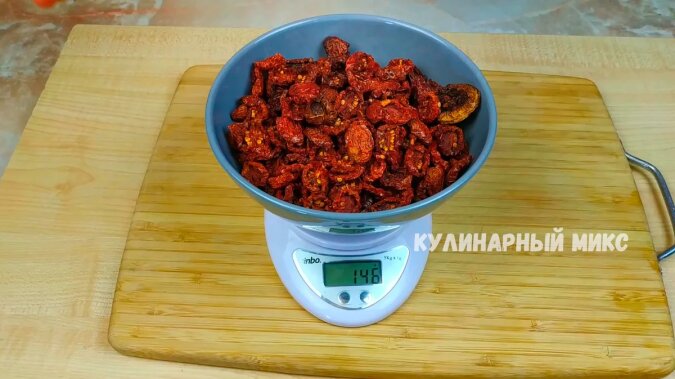 Z 2 kg pomidorów powstaje tylko 150 g. To wspaniale. Te pomidory zajmują bardzo mało miejsca i mają bardzo skoncentrowany smak.