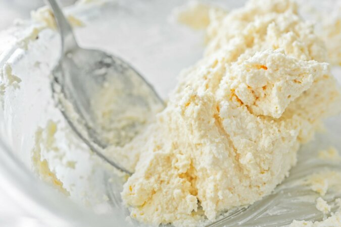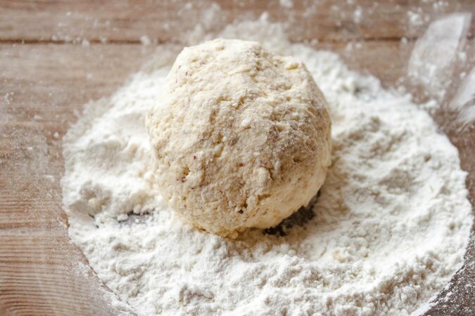 Najpierw pokrój masło w kostkę i rozpuść w łaźni wodnej. W tym czasie zetrzyj widelcem 250 g twarogu. Następnie do twarogu dodaj masło, cukier, 1 jajko i mąkę. Zagnieć ciasto. Możesz potrzebować więcej mąki, patrz na ciasto. Powinno być elastyczne i nie przylegać do dłoni.