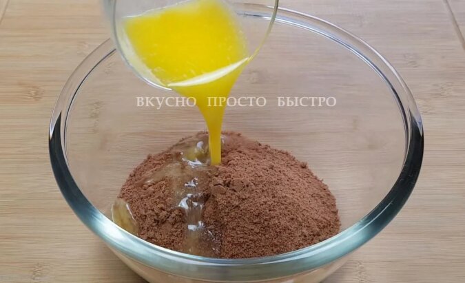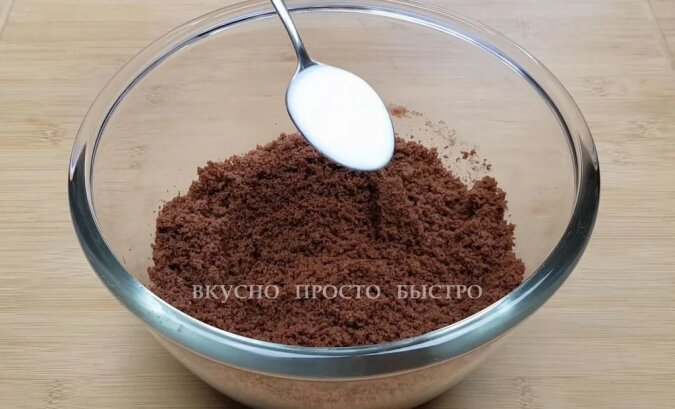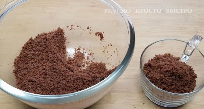 300 gramów kruchego ciasta czekoladowego należy rozgnieść do okruchów