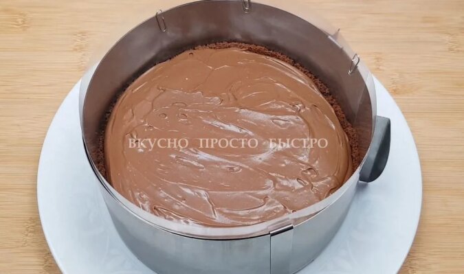 Krem czekoladowy jest gotowy, całość włóż do formy i wyrównaj.