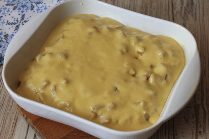Zalewamy drugą połową ciasta i ponownie wkładamy do piekarnika - ciasto należy piec przez 25-30 minut.