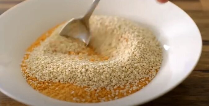 Dodaj 2-3 łyżki nasion sezamu i wymieszaj.