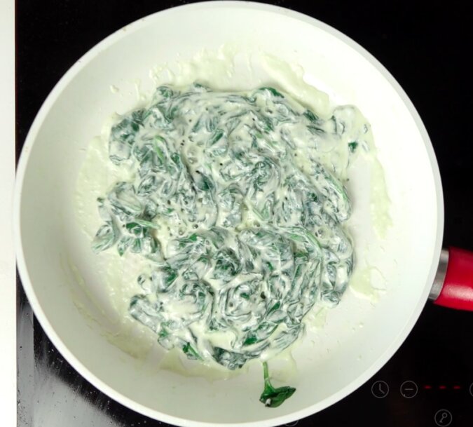 Na patelni należy podsmażyć liście szpinaku, następnie dodać do nich ser ricotta. Wszystko dokładnie mieszamy i odstawiamy na chwilę, by przeszło smakiem.