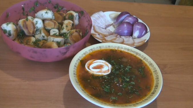 Gotuję czosnkowe bałabuszki do barszczu. Mój mąż szczególnie lubi mieć na stole zieloną cebulę i kawałek boczku. Nazywa ten posiłek „królewskim”. Nie wiem jak królowie, ale my to naprawdę lubimy!