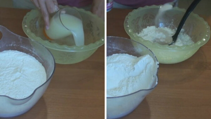 We wsi, te małe bułeczki nazywano bałabuszki. Wytwarzane są z ciasta drożdżowego w wodzie, serwatce lub mleku. Aby przyspieszyć proces, użyłam suchych drożdży. Jeśli wolisz świeże, najpierw musisz zrobić rozczyn. W tym celu rozpuść drożdże i cukier w płynie, dodaj kilka łyżek mąki, zamieszaj i odstaw na 10-15 minut. Gdy uformuje się kożuch, dodaj pozostałą mąkę i sól.