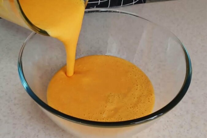 Przede wszystkim marchewkę należy dokładnie wyczyścić, a następnie zblędować za pomocą blendera lub zetrzeć na tarce o drobnych oczkach. Następnie do drobno startej marchwi należy wsypać cukier, wlać olej, wbij jajka i ponownie wszystko zblędować w blenderze na gładko.