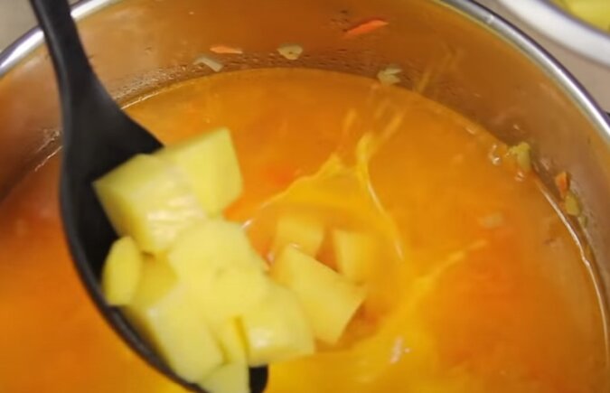 Wlej 1,5 litra czystej przefiltrowanej wody do rondla z warzywami. Następnie obierz ziemniaki i drobno posiekaj. Dodaj ziemniaki do rondla oraz posyp solą.