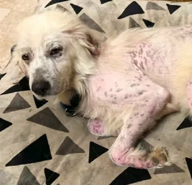 Sherin, koordynator ds. Ratowania zwierząt, przypadkowo zobaczyła psa, który był prawie całkowicie łysy. Prawie się rozpłakała z litości. Pomimo jego okropnego i nędznego wyglądu, było jasne, że jest to pies rasowy.
