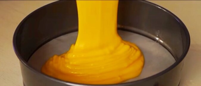 Wlej do przygotowanej formy ciasto i równomiernie rozprowadź.