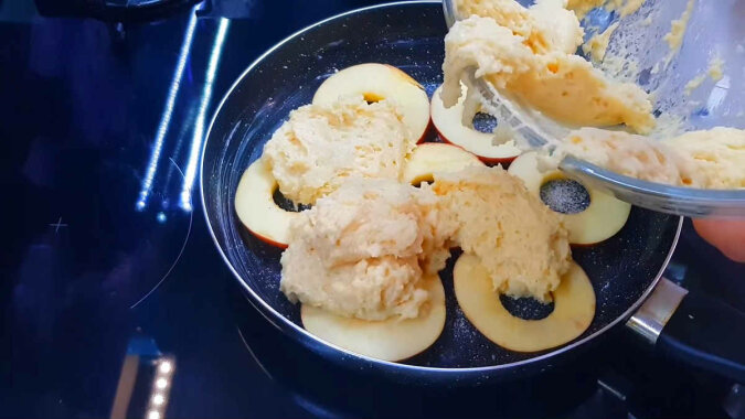 Niedawno znajoma poprosiła abym jej pomogła nakryć świąteczny stół. Gotowanie zajęło pół dnia! Ale kiedy przyszedł czas na upieczenie deseru, okazało się, że zarówno piekarnik, jak i wolnowar były zajęte. Ale nie można zostawić świąt bez słodyczy. Na własne ryzyko przygotowałyśmy ciasto z jabłkami na patelni. Okazało się jeszcze smaczniejsze niż w piekarniku!