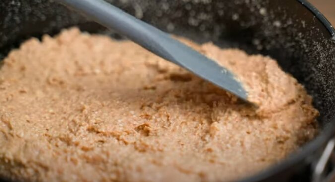 Płatki owsiane zmiel blenderem i dodaj do masy razem z proszkiem do pieczenia.