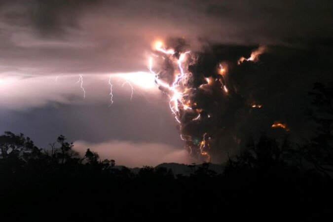 Błyskawice w czasie erupcji wulkanu. Występują, gdy w smudze wulkanicznej pojawia się błyskawica.