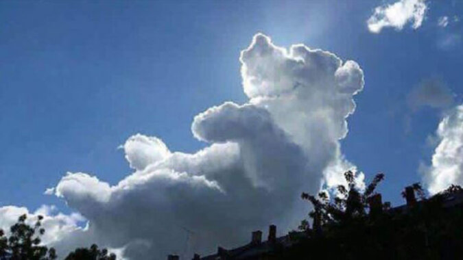 Chmura „Kubuś Puchatek”. Sfotografowana w lipcu 2016 roku w Dorset w Wielkiej Brytanii. Dziwna chmura zawisła dokładnie nad miejscem, w którym odbywała się akcja charytatywna dla dzieci