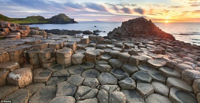 „Bridge of the Giants” (lub Most Gigantów) w Irlandii Północnej. Pomnik przyrody składający się z około 40 000 połączonych ze sobą bazaltowych filarów utworzonych przez starożytną erupcję wulkanu