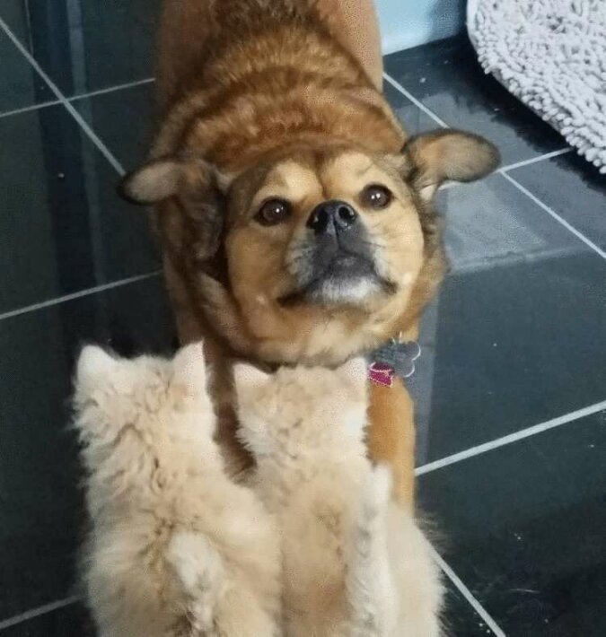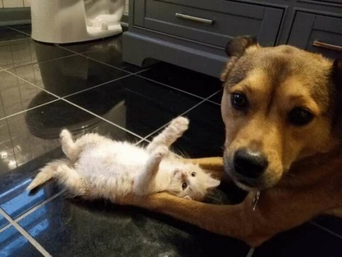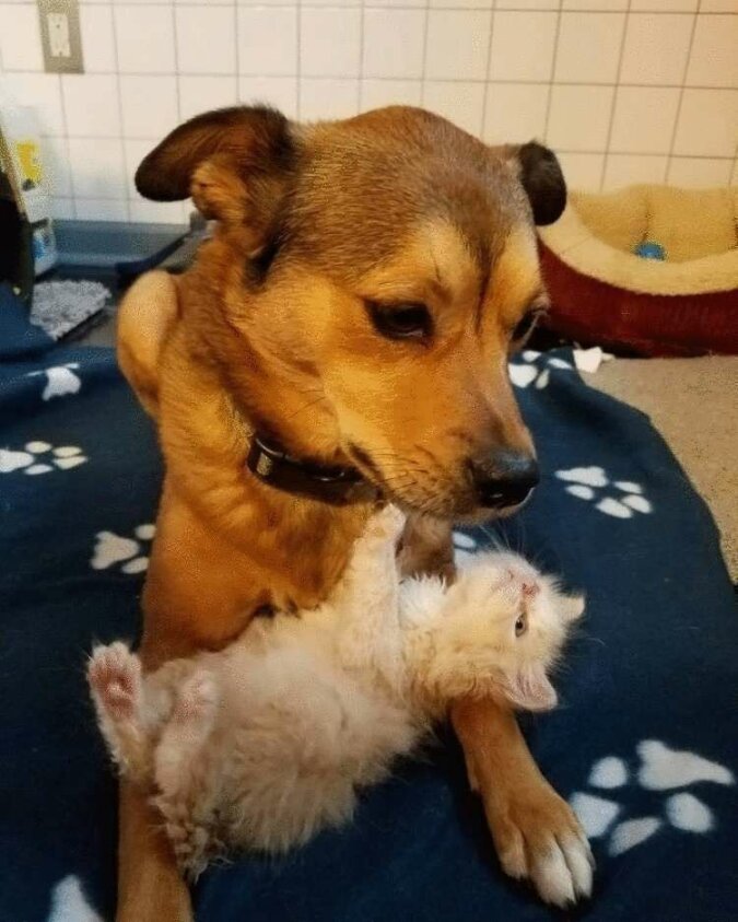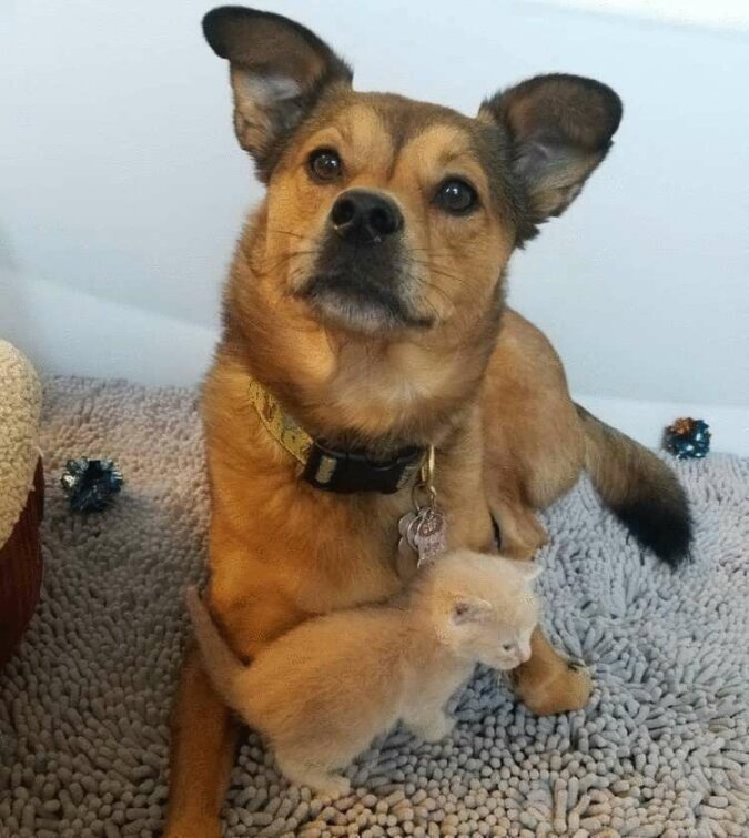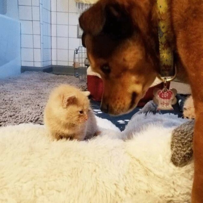 Turbo najpierw dokładnie zbadał kocięta, a następnie zaczął je lizać i ogrzewać. Pies nie zostawił maluchów ani na minutę, a potem razem zasnęli.
