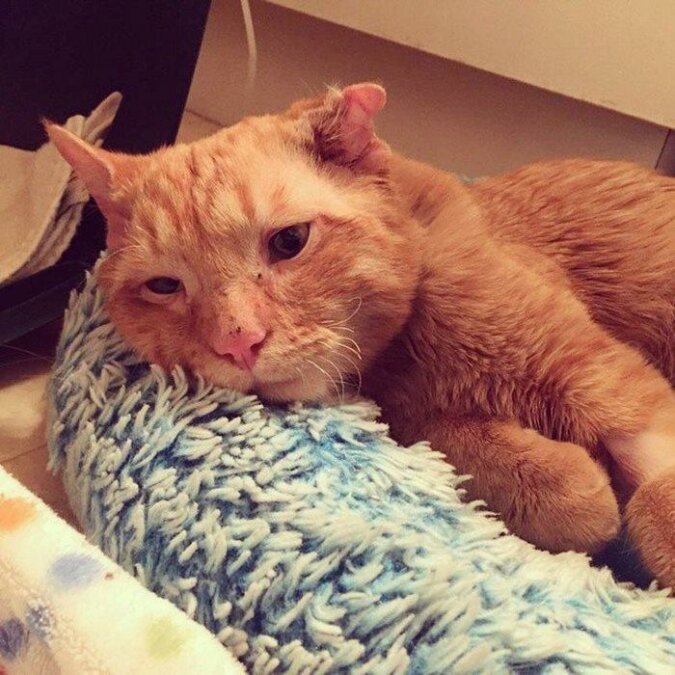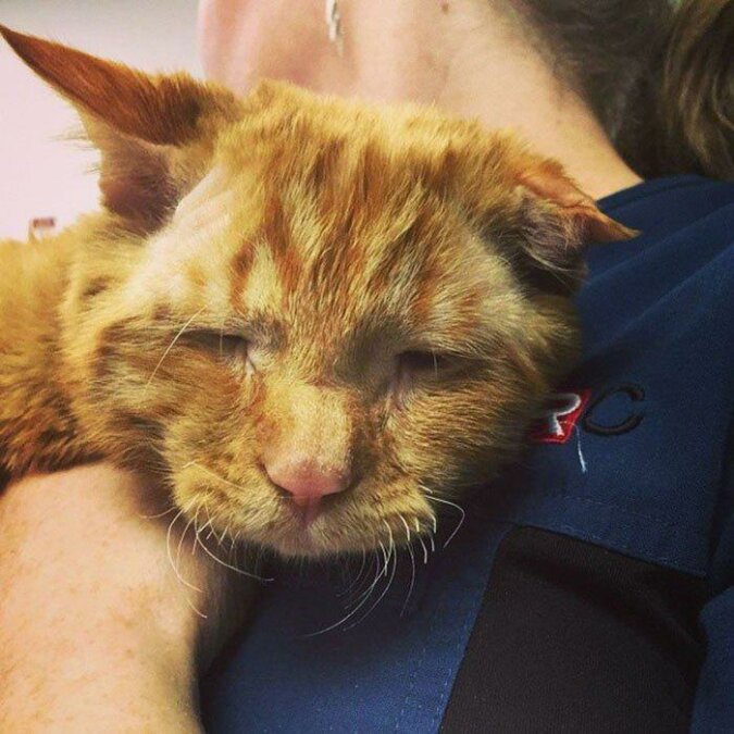 Chociaż nadal podawane są mu środki przeciwbólowe, ten niegdyś najsmutniejszy kot jest zdecydowanie szczęśliwy!