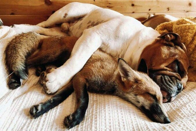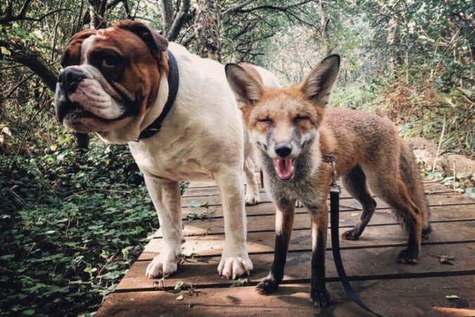 Historia zna wiele przykładów niesamowitej przyjaźni. Na przykład mały lisek był w stanie rozkochać w sobie ogromnego buldoga. A teraz ta para jest nierozłączna ani w dzień, ani w nocy.