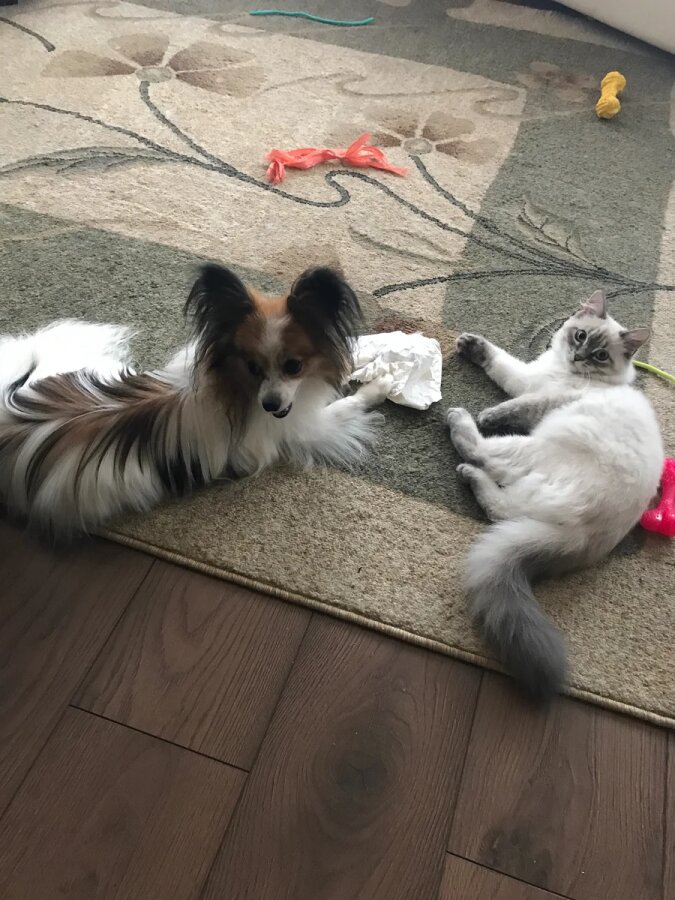 Inną ich grą jest konkurs kto kogo szybciej złapie. Keks zawsze ucieka przed kotkiem. Richie zawsze skacze na ogon Keksa.