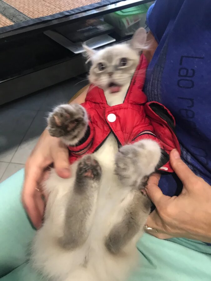 A potem krzyczy rozdzierająco na oparciu krzesła, błagając o jedzenie, że niby biedny kot nie jest karmiony! Tak, tylko 6 razy dziennie.