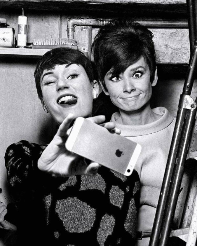 Flora Borsi jest węgierską fotografką i artystką wizualną, która z łatwością manipuluje fotografiami własnymi i cudzymi. Przy swoim nowym projekcie „Selfie” Flora wyobraziła sobie, że cofnęła się w czasie i zrobiła zdjęcia ze sławnymi ludźmi. Dziewczyna chciała wiedzieć, jak wyglądałaby obok gwiazd Hollywood, naukowców i artystów. Aby przedstawić się w przeszłości, przeanalizowała styl i fryzury z tamtych czasów, a także oświetlenie, perspektywę i inne niezbędne elementy na oryginalnych fotografiach. W efekcie na zdjęciach nic nie dodaje nowoczesności Florze poza jej telefonem.