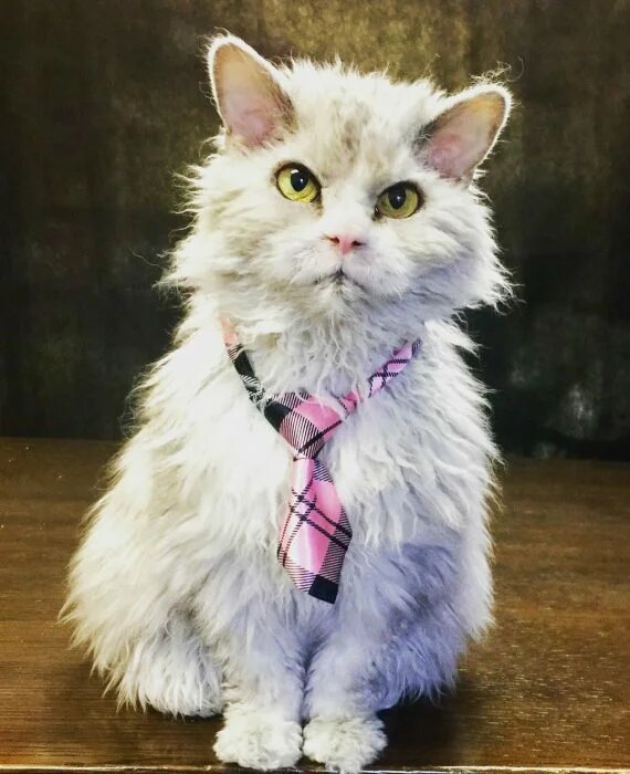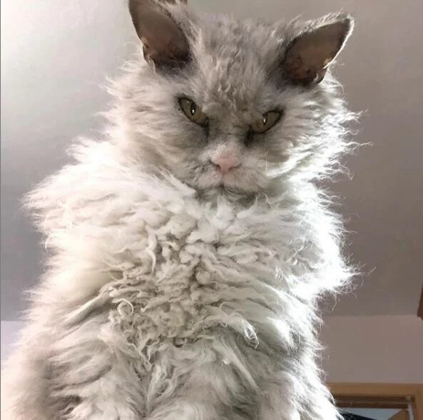 Dodatkowego kolorytu wyglądu nadaje kędzierzawa sierść, którą odziedziczył po przodkach rasy Selkirk Rex.