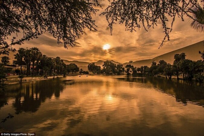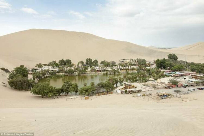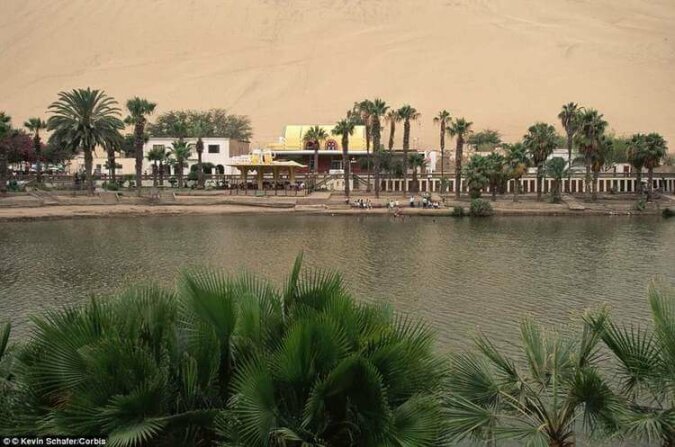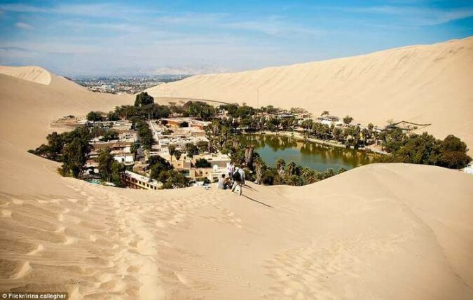 W rzeczywistości nie ma wątpliwości co do rzeczywistości tego wspaniałego miasta z dużą ilością zieleni, bujnymi palmami i pięknym jeziorem, które zyskało sławę uzdrawiania. Ta oaza nazywa się Huacachina i mieszka w niej tylko 96 osób. Jednak mimo tak małej populacji są tu nie tylko sklepy i hotele, a nawet biblioteka.