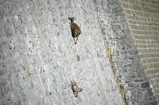 Grawitacja też tu działa, koza naprawdę stoi tak na ścianie