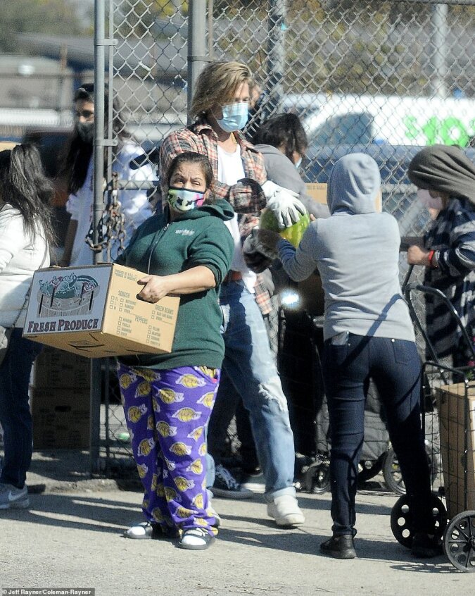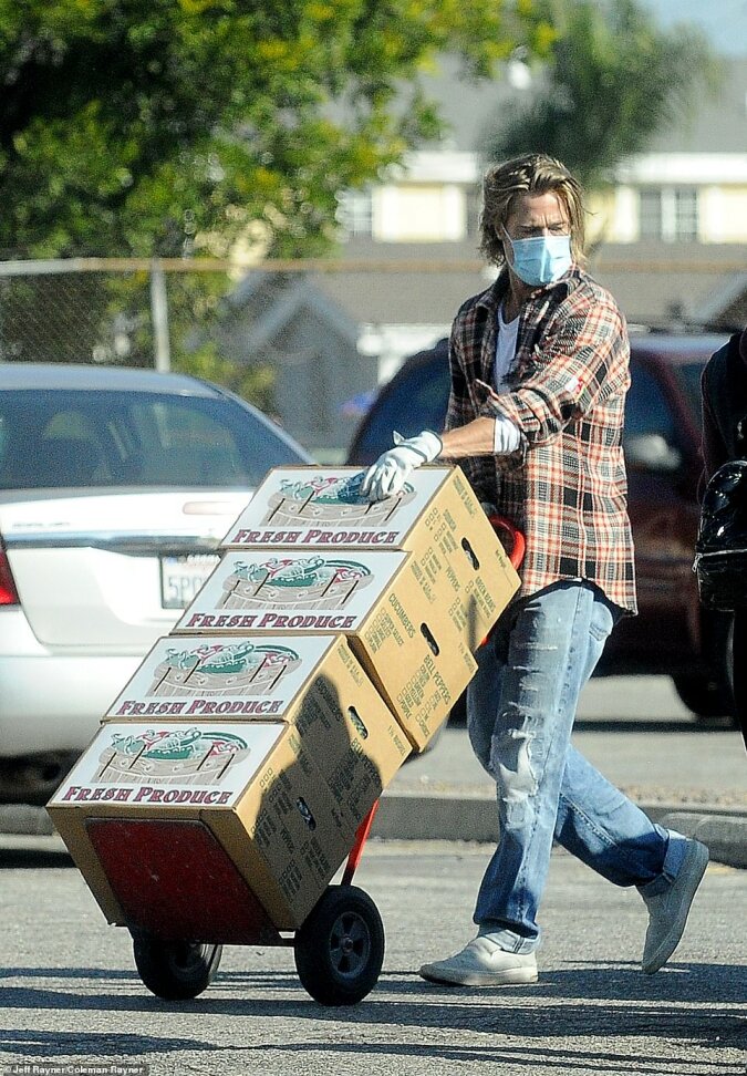 Nie zapominajmy – Brad nie jest młody, ma już 56 lat. Tak, jest w dobrej kondycji fizycznej i ma mnóstwo pieniędzy, więc Pitt zdecydował się pracować jako ładowacz nie dla siebie ani dla PR, ale dlatego, że jest to konieczne. Potrzebny był mieszkańcom Los Angeles, gdzie on sam mieszka - w skrzynkach znajdowało się jedzenie i niezbędne artykuły dla biednych. Jak zauważyli inni ochotnicy, nawet po ujawnieniu jego tożsamości aktor zachowywał się w bardzo naturalnie. Na przykład nie gardził przekąskami z tłuczonych ziemniaków z jajecznicą na prostym plastikowym talerzu z lokalnej kawiarni, jak wszyscy inni.