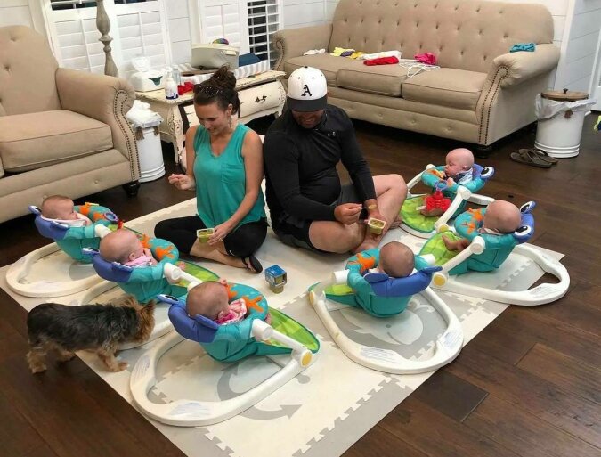 Lekarz prowadzący Courtney przepisał jej lek na zwiększenie płodności. Kobieta z powodzeniem zaszła w ciążę, a badanie ultrasonograficzne wykazało aż 6 zarodków w jej macicy. „Byłam śmiertelnie przerażona, moja pierwsza myśl dotyczyła tego, jak mogę urodzić sześcioro dzieci, aby zarówno ja jak i dzieciaki pozostały przy życiu! To było bardzo straszne! Po prostu nie wiedzieliśmy, co robić i co myśleć ”- mówi Courtney. A głowa rodziny się śmieje, wspominając tamten dzień: „Prawie straciłem przytomność”.
