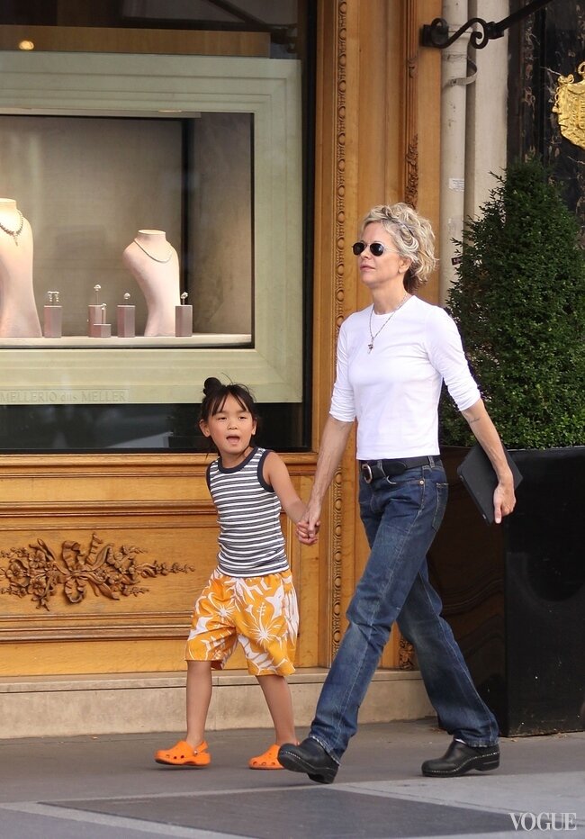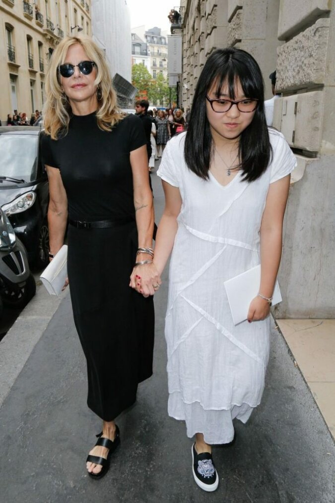 Meg zaadoptowała małą dziewczynkę z Chin 14 lat temu. Jak powiedziała sama aktorka, nie specjalnie dokonała takiego wyboru, ponieważ w Ameryce proces adopcji jest bardzo długi, pracochłonny i wyczerpujący. A tam wszystko jest znacznie prostsze: podajesz płeć, wiek i za kilka miesięcy jesteś matką.