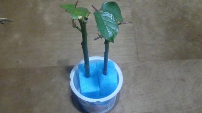 Do ukorzeniania w gąbce do naczyń można również użyć sadzonek róż z podarowanego bukietu, a także tych, które pozostały po jesiennym cięciu.