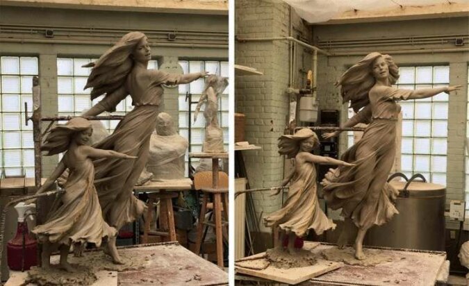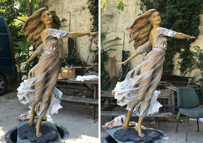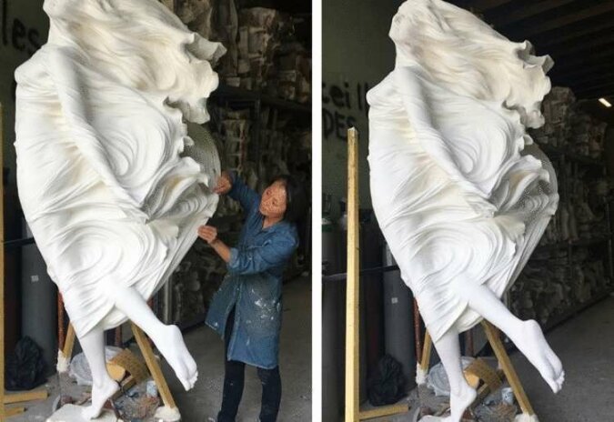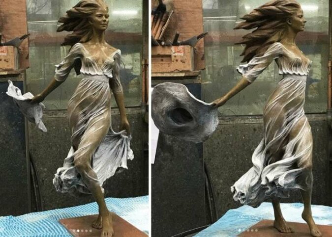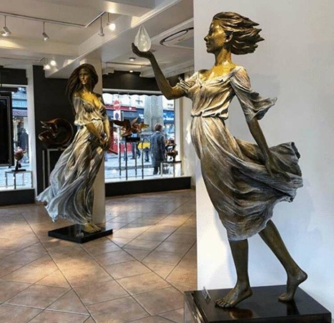 Chińska artystka Luo Li Rong tworzy brązowe posągi kobiet w sukienkach o włosach powiewających na wietrze. Jej postacie zdają się być zastygnięte w ruchu.